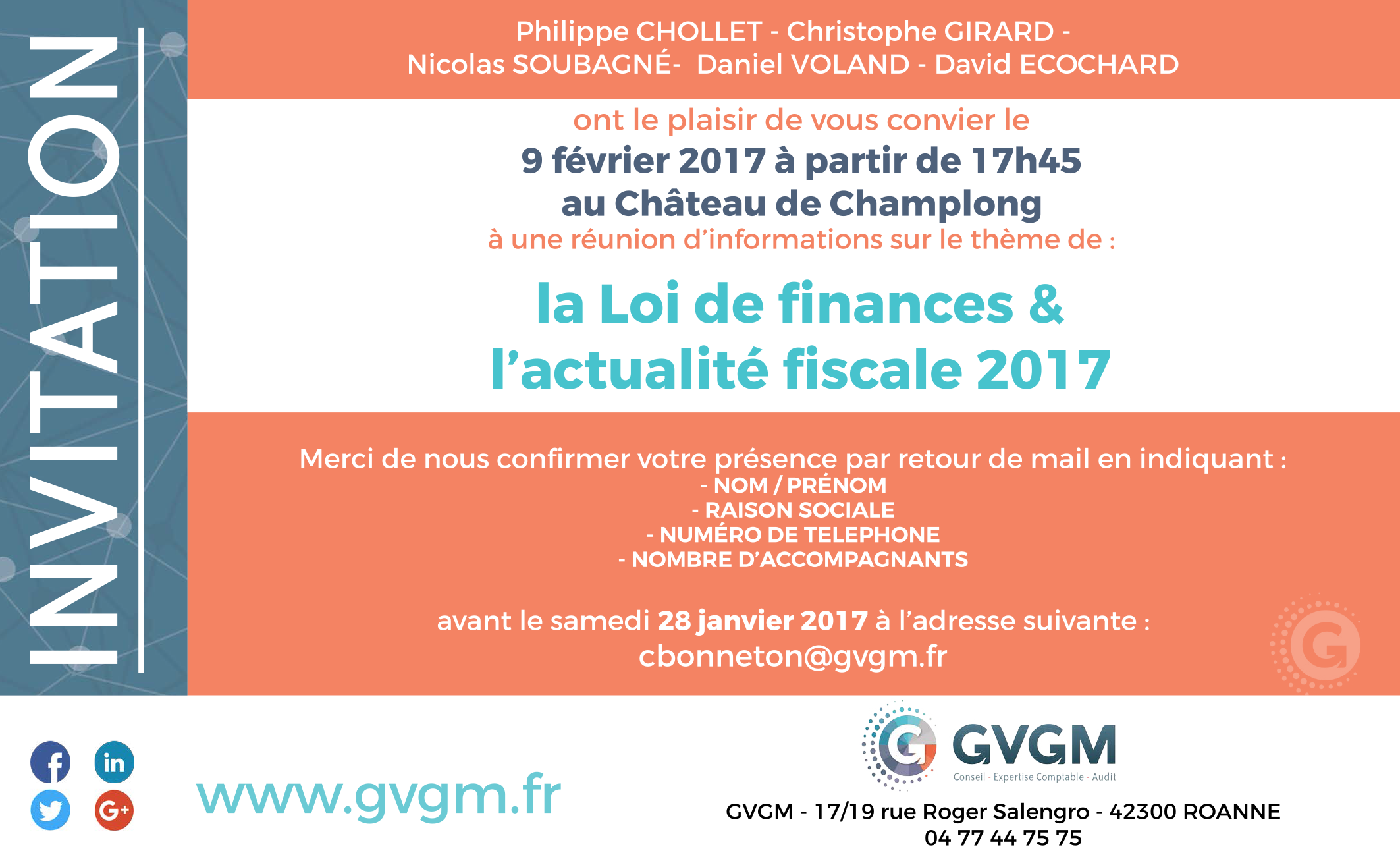 GVGM organise une réunion d’information sur la loi Finances & l’actualité fiscale 2017 ouverte à ses clients sur inscription.