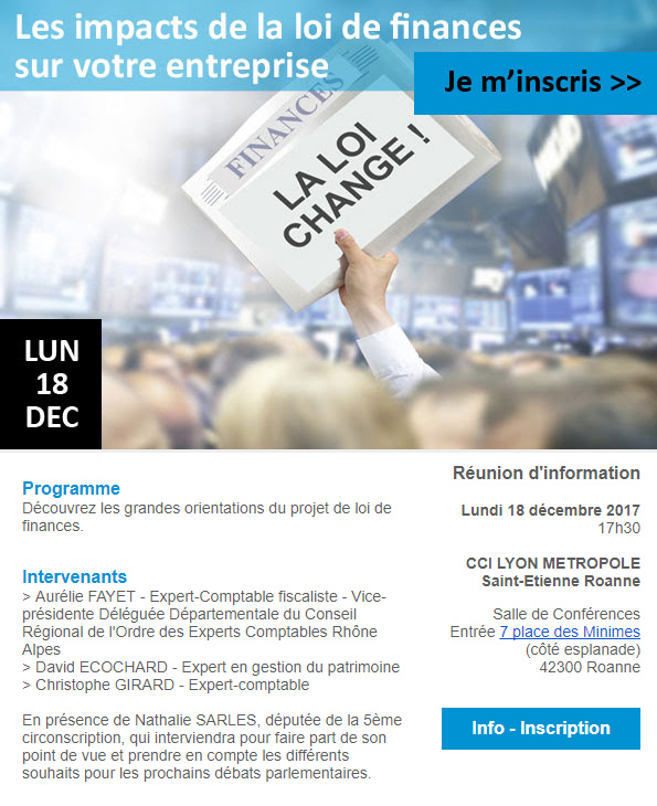 GVGM et GVGM formation animeront une réunion d’information à la CCI Lyon Métropole Délégation de Roanne sur le thème : « Les impacts de la Loi de Finances sur votre entreprise ».