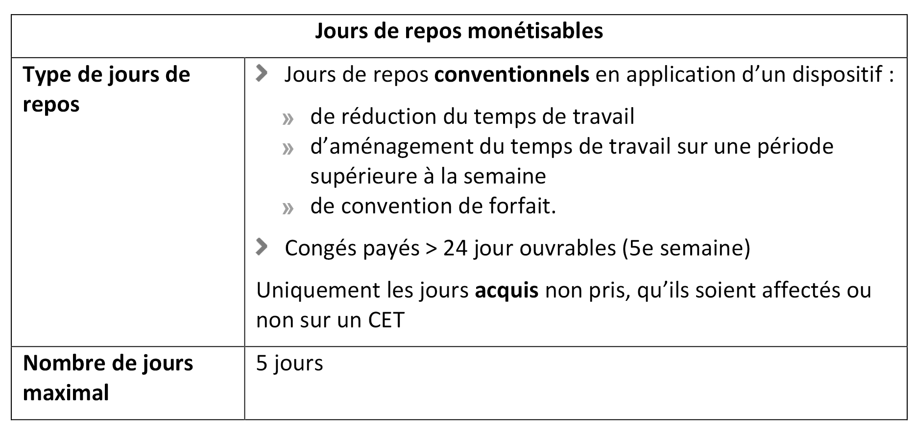 » demander la monétisation de jours de repos pour compenser tout ou partie de la baisse de rémunération qu’ils auraient eux-mêmes subie.